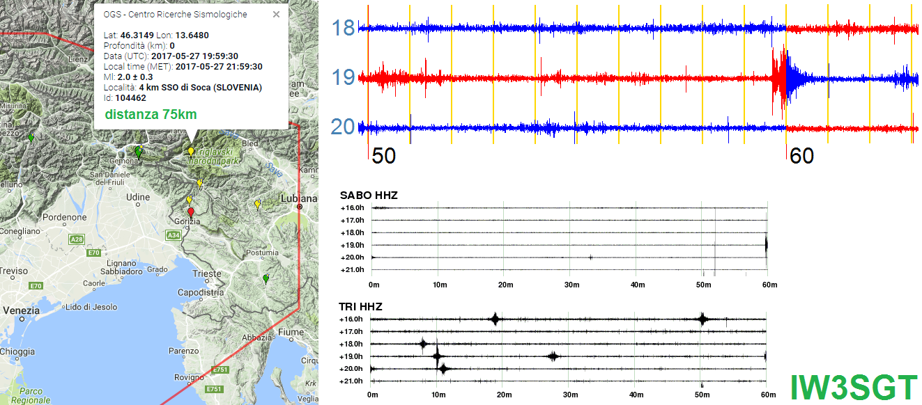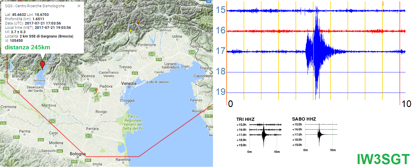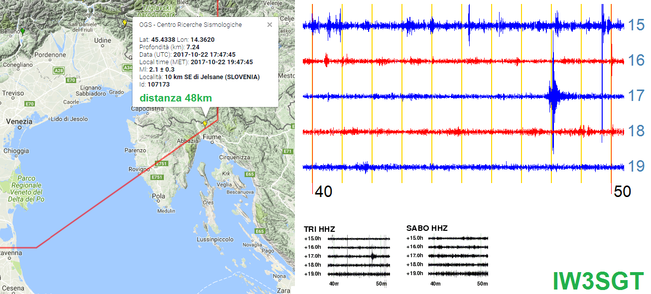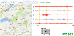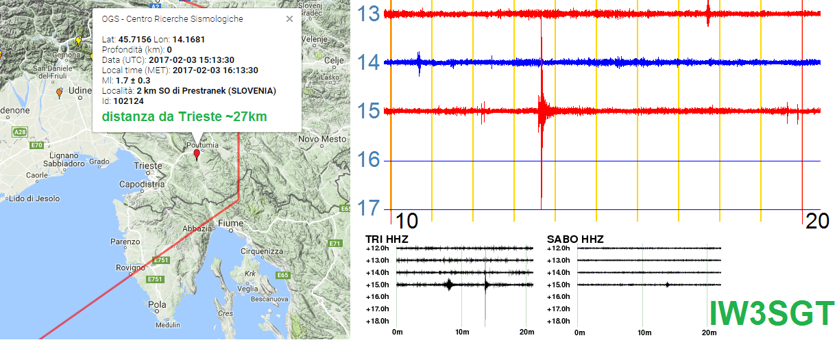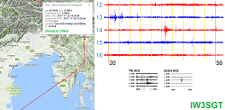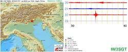 IW3SGT station: 4.5Hz geophone for Z axis, 24bit ADC, sw HAL and Dolquake, limestone rock soil, 360m asl (Carso), 45.66N 13.83E, Trieste, NE Italy |